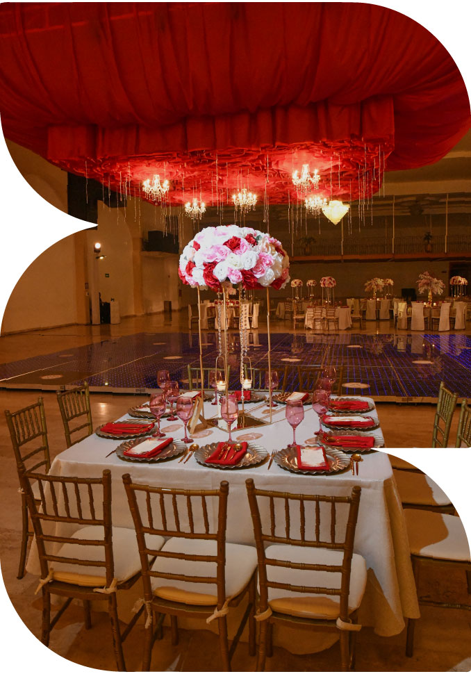 Diseñado especialmente para eventos de gran escala, con una capacidad que va desde 500 hasta 2,200 personas. Es el escenario perfecto para bodas, graduaciones y cualquier celebración de alto nivel.