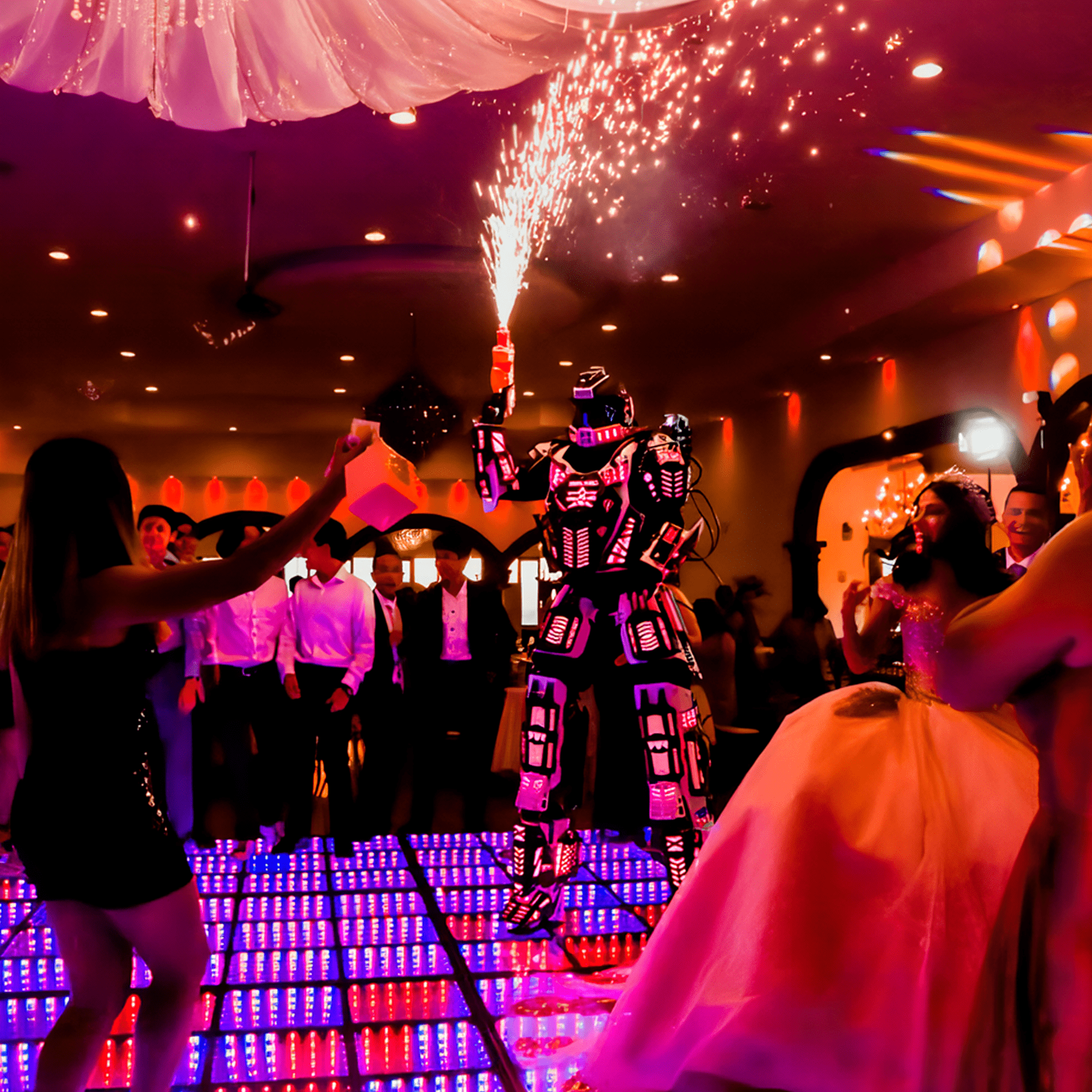 Eleva tu evento con nuestra selección de servicios adicionales: desde una pista iluminada hasta robots LED, zanqueros, y pirotecnia fría. Disfruta de la mejor música con saxofonistas, mariachis, cuartetos y DJs profesionales.